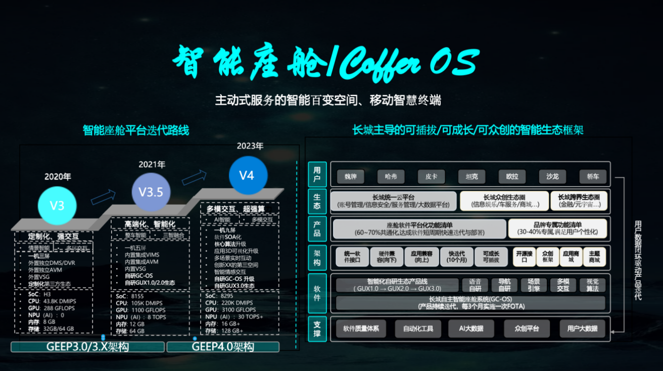 目前,我们在V4平台正尝试和高通8295进行合作,其中包括多模交互、多场景交互的布局,希望大家会对长城未来的新车有所期待。