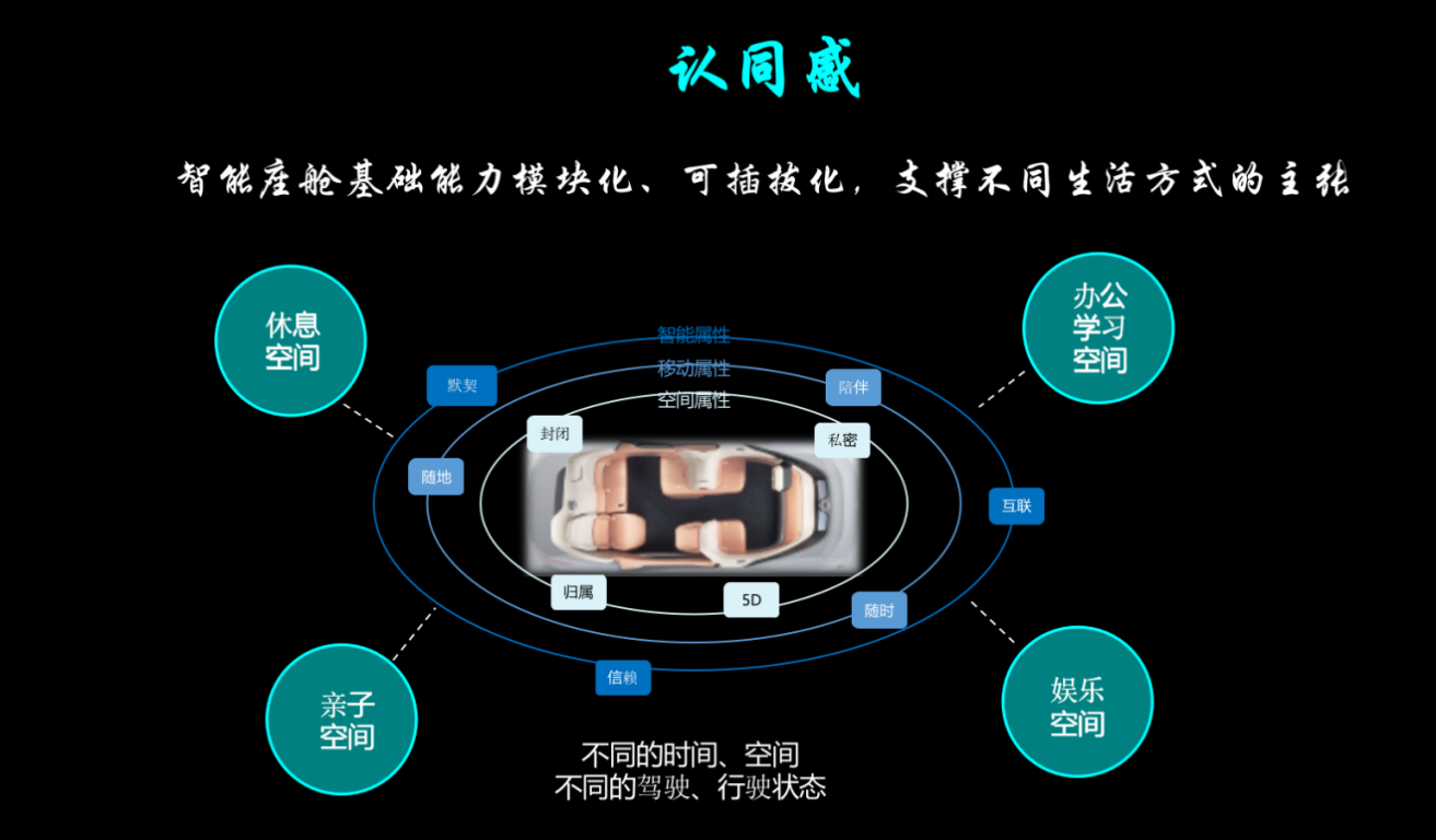 最后一点是我们前面提到的认同感。大家多次谈到车是第三空间,在从第一空间向第二空间移动的过程中,人们有了很多碎片化的时间,在移动的过程中我们可以做什么?这是我们想给用户的答案。