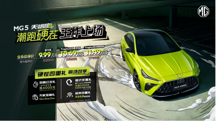 4月8日,名爵旗下潮跑硬茬MG5天蝎座线上上市。新车共推出三款车型,官方指导价10.29万元-11.79万元。