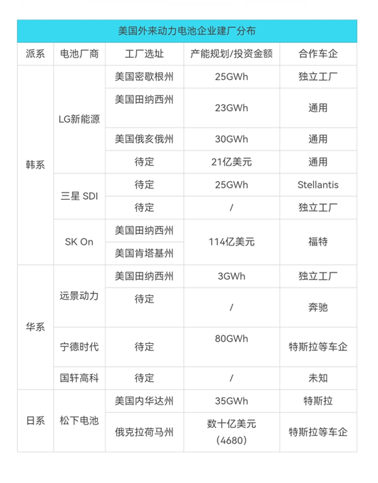 更何况,除了宁德时代之外,还有不少华系的动力电池企业,准备来美利坚“闯一闯”。