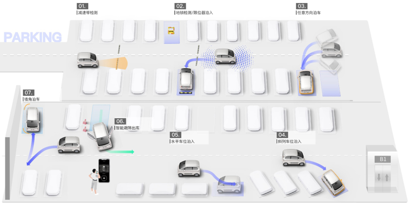 功能上,聚焦于用户需求强烈的泊车场景,“灵犀智驾系统”可以识别多种状态的车位,并在30秒左右的时间高效泊入,并支持泊入极窄车位和召唤驶出。对于车位中的地锁,该系统也可以准确识别,功能贴近用户实际生活场景。