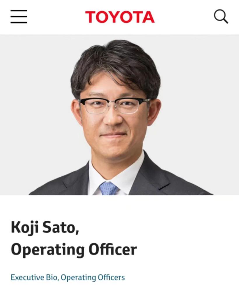 佐藤恒治1969年出生于日本,1992年毕业于早稻田大学,毕业后一个月就加入了丰田技术管理部。1994年参与了卡罗拉、普锐斯等品牌部件开发。曾任雷克萨斯LC车型的总工程师,2017年4月出任雷克萨斯总经理。