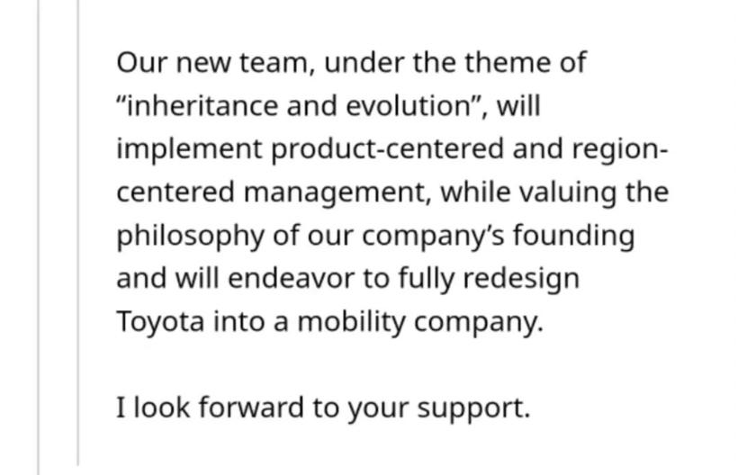 有趣的是,这次人事变动与丰田章男当初就任丰田社长时有诸多相似之处。