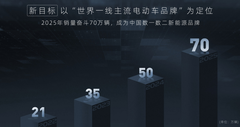 4个月前,邓承浩在面试长安新能源总经理的时候承诺:要在2021年达到10万销量,2022年卖21万台,2023年25台,2024年卖50台。到2025年,长安新能源希望奋斗至70万销量,确保长安汽车整体105万台的目标超额达成。