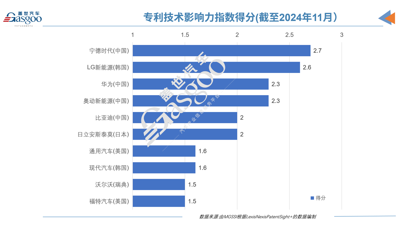 然而,当采用基于被引频次等指标的技术影响力评分体系进行评估时,排名发生显著变化:宁德时代以2.7分高居榜首,远超1.0分的行业平均水平;跻身前五名的其他中国企业包括华为(2.3分)、奥动新能源(2.3分)和比亚迪(2.0分)。Ryusuke Ishiguro表示,华为虽主业聚焦电信与智能手机,但该公司通过专利技术迁移,正加速渗透汽车行业。