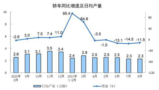 分行业看,8月,41个大类行业中有34个行业增加值保持同比增长,但汽车制造业增加值下降了12.6%。数据显示,8月,我国汽车产量173.4万辆,下降19.1%;其中,新能源汽车表现亮眼,产量达33.0万辆,增长151.9%。1-8月,我国汽车累计产量1634.3万辆,同比增长13.5%。