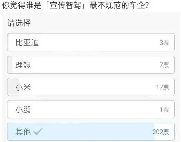 回到《交通言究社》的推文,关于车企误导宣传的相关法律责任判定上,有一条颇为醒目:若车企通过广告或宣传材料虚构、夸大辅助驾驶功能,误导消费者购买,市场监管部门可依据《广告法》对虚假宣传行为处以广告费用5-10倍罚款,情节严重的吊销营业执照。