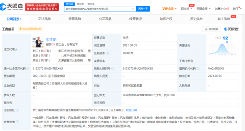 财经网汽车讯 8月6日消息,天眼查App显示,近日,金华零跑新能源汽车零部件技术有限公司成立,注册资本2亿,法定代表人为朱江明,经营范围包括汽车零部件研发;汽车零部件及配件制造;电池制造;智能控制系统集成;数据处理和存储支持服务等。股东信息显示,该公司由浙江零跑科技股份有限公司100%控股。