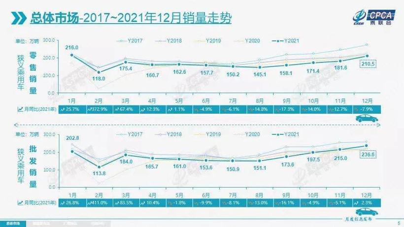 2021年12月乘用车零售环比走势明显改善,狭义乘用车销量达到210.5万辆。