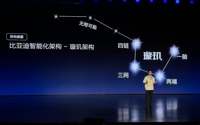 璇玑结构灵感源自于北斗星中的天璇星和天玑星为灵感,通过以太网链接,实现无限智能化的拓展。因此,璇玑架构也称之为比亚迪的智能化架构。
