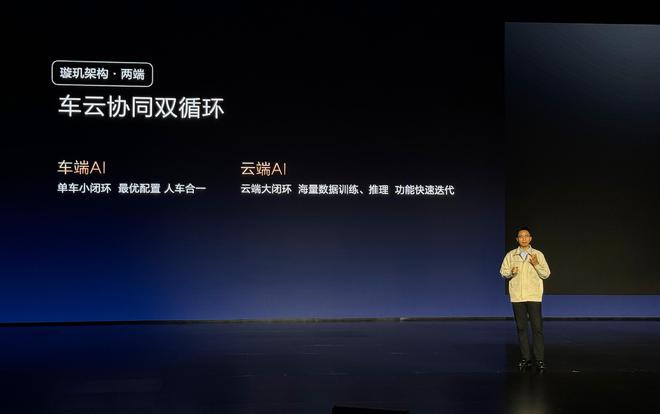 两端,是指璇玑架构的车端AI和云端AI,能够实现车主驾驶的个性化需求。车端AI,能实现单车数据小闭环,综合分析车主数据,满足千人千车的需求,做到最优的适配,实现人车合一。