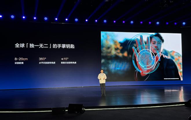 这次发布会,比亚迪带来全球唯一的手掌钥匙,通过摄像头读取手掌的静脉数据,可在8-20cm的距离间,水平360度,垂直15度进行识别,利用专业图像采集模块获取静脉纹路的图像,经过算法提取特征并存储,最终实现身份验证和识别。安全性高,生物信息无法盗窃,识别精准度超高,难伪造,轻松区别双胞胎。