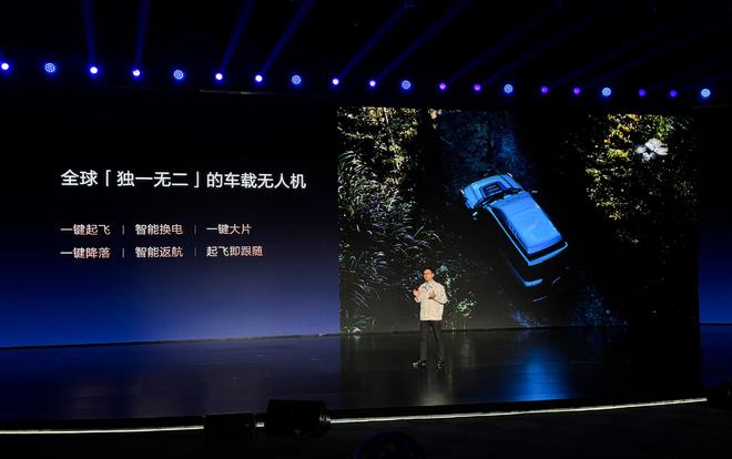 车载无人机可以通过手柄或座舱屏幕操控。用户无需下车,即可在车载无人机库提供的起降平台上进行自动起飞和降落,适应各种越野地貌。无人机通过海量的AI训练,使无人机自动识别并跟车伴飞,最高支持55km/h跟车速度。