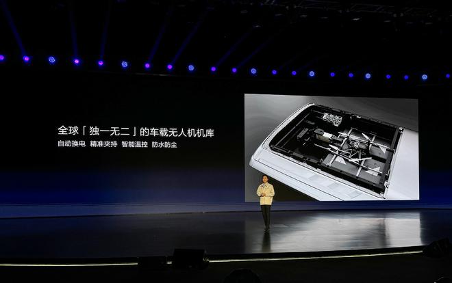 比亚迪和大疆联合开发的全球首个整车集成的车载无人机,将会搭载在仰望U8越野玩家版上。首创一体化车规级无人机库,比亚迪全栈自研,能够实现收放自如、智能温控、防水防尘、自动换电,真正适合车载工况。配合业内领先的无人机传感链,实现高清高帧率低延迟图传,为整车拓宽清晰视野。
