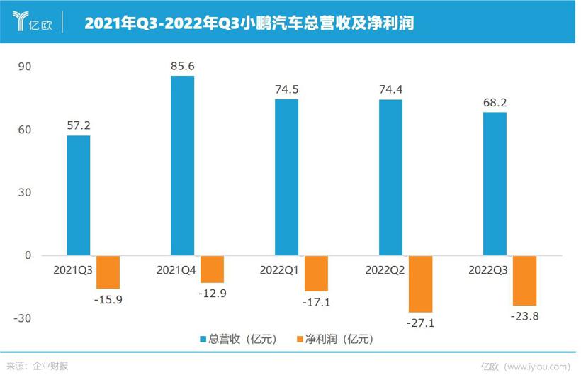 其中,汽车销售收入为62.4亿元,同比增长14.3%;服务及其他收入为5.8亿元,较去年同期2.6亿元增长124.1%,比今年第二季度的5亿元增长17%。盈利方面,小鹏汽车净亏损23.8亿元,环比收窄12.0%。