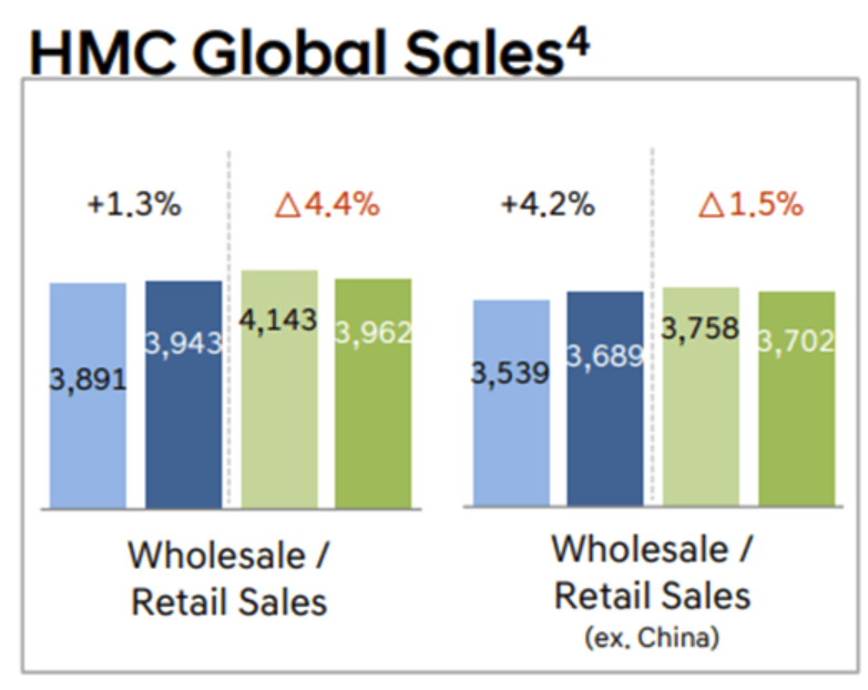 为此,从2017年开始,现代汽车集团的业绩报告在讨论全球销量的时候,都会单独列出除去中国市场的全球销量表现及同比变化。