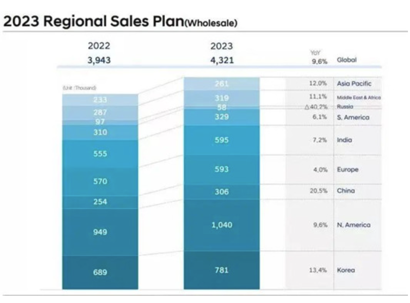 但显而易见的是,越是处于逆境之中,越不能轻易放弃,对此现代汽车集团也在努力。在2023年的销量预期中,现代预计将增长9.6%达432万辆,中国市场同比增长20.5%达30.6万辆,也是期望增幅最高的地区。